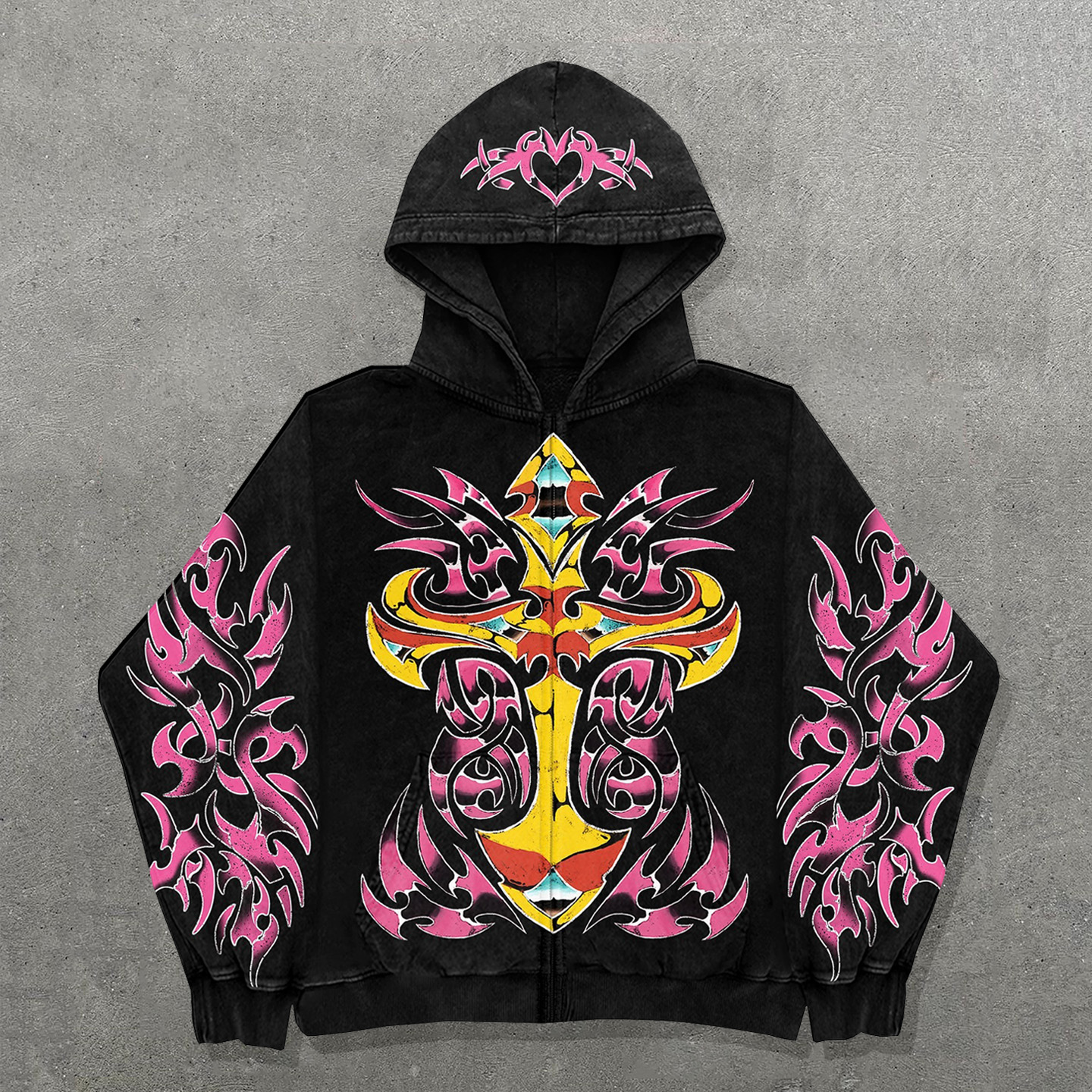 Cross Heart Print Long Sleeve Zipper Hoodies