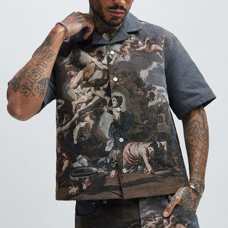 Vintage Oil Painting Tapestry Shirt Jacket