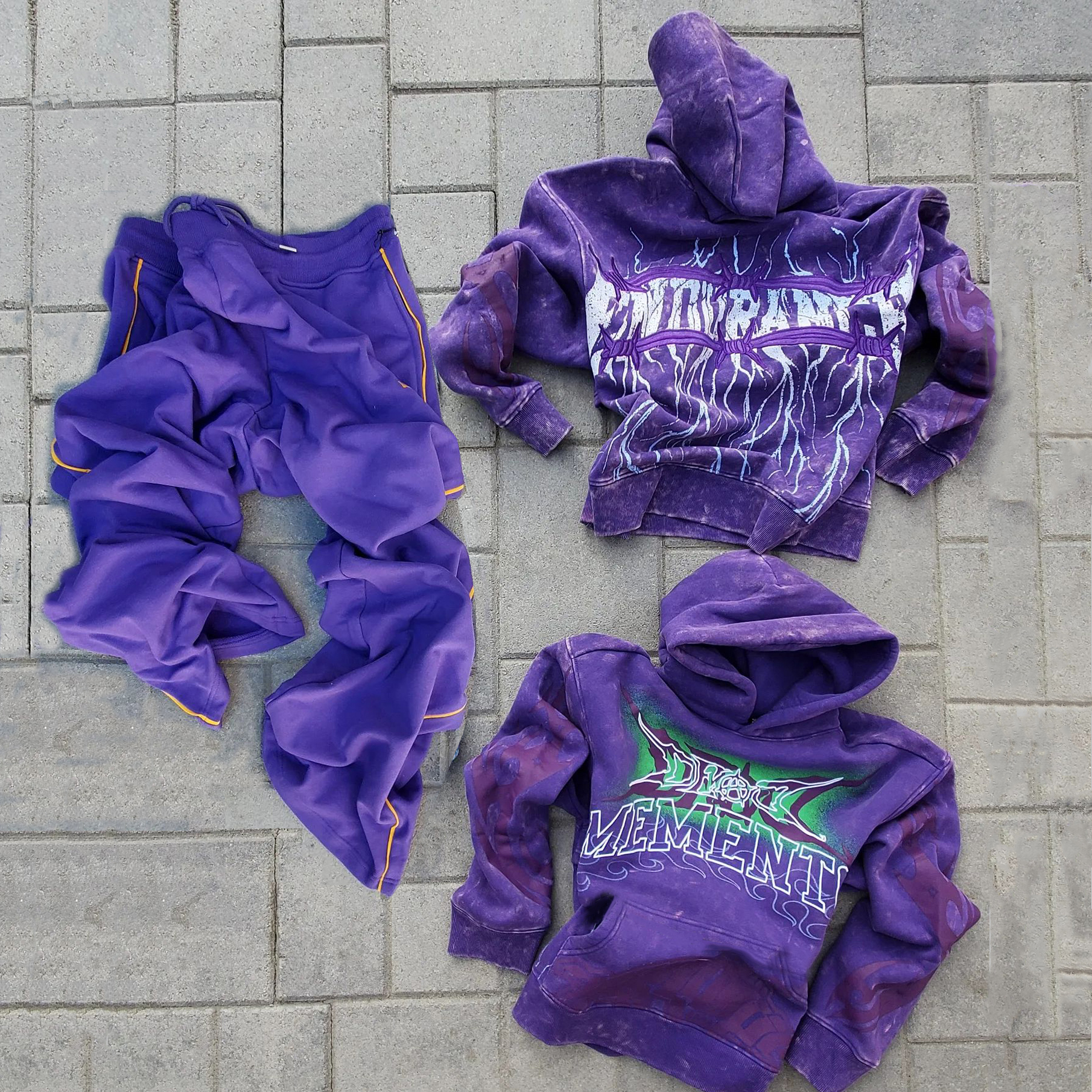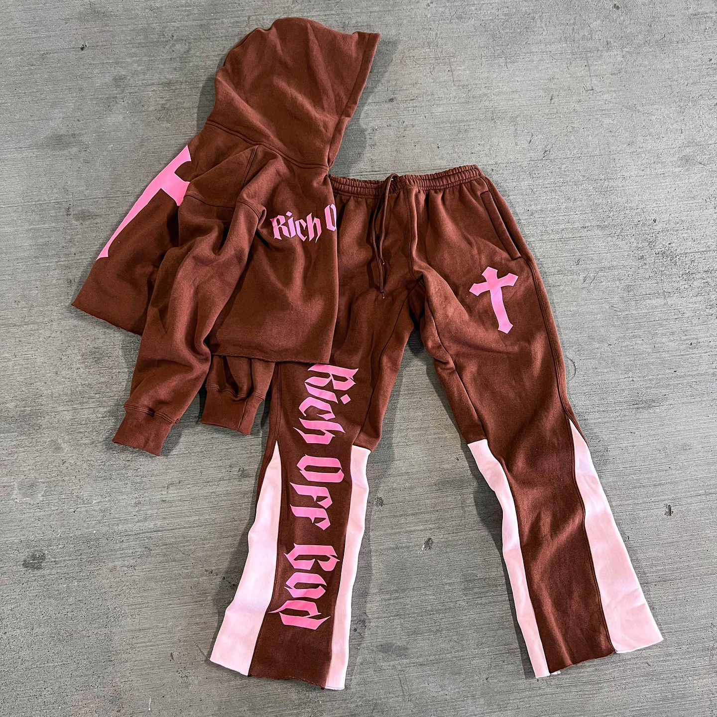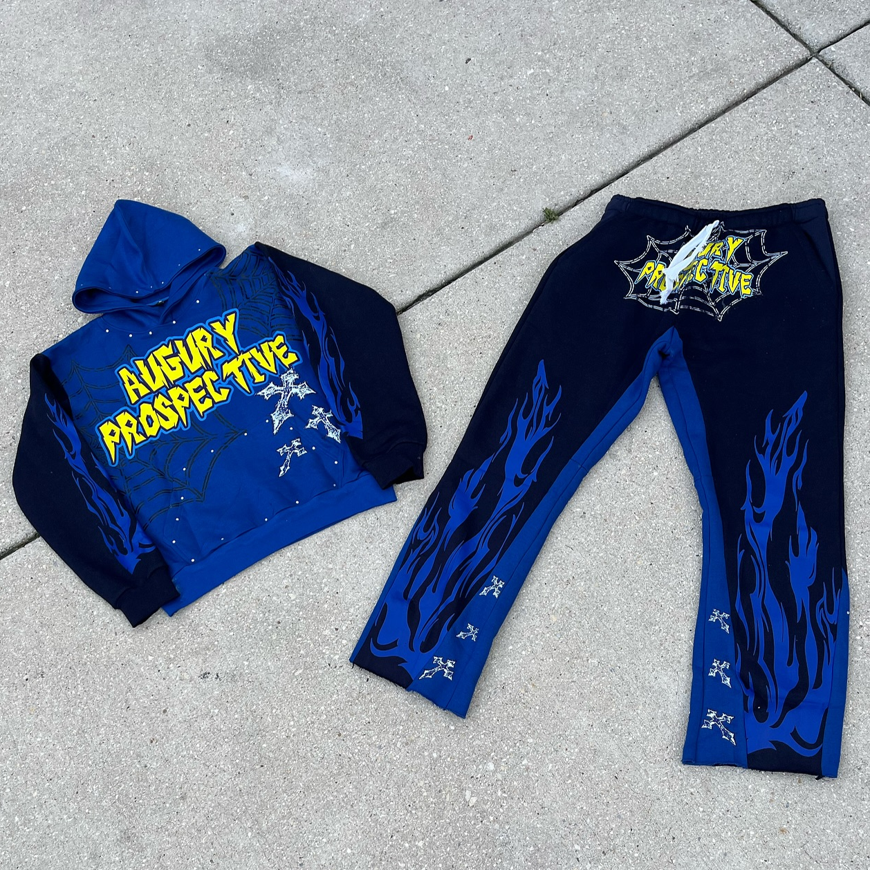 Retro flame hot diamond sweatshirt two-piece set