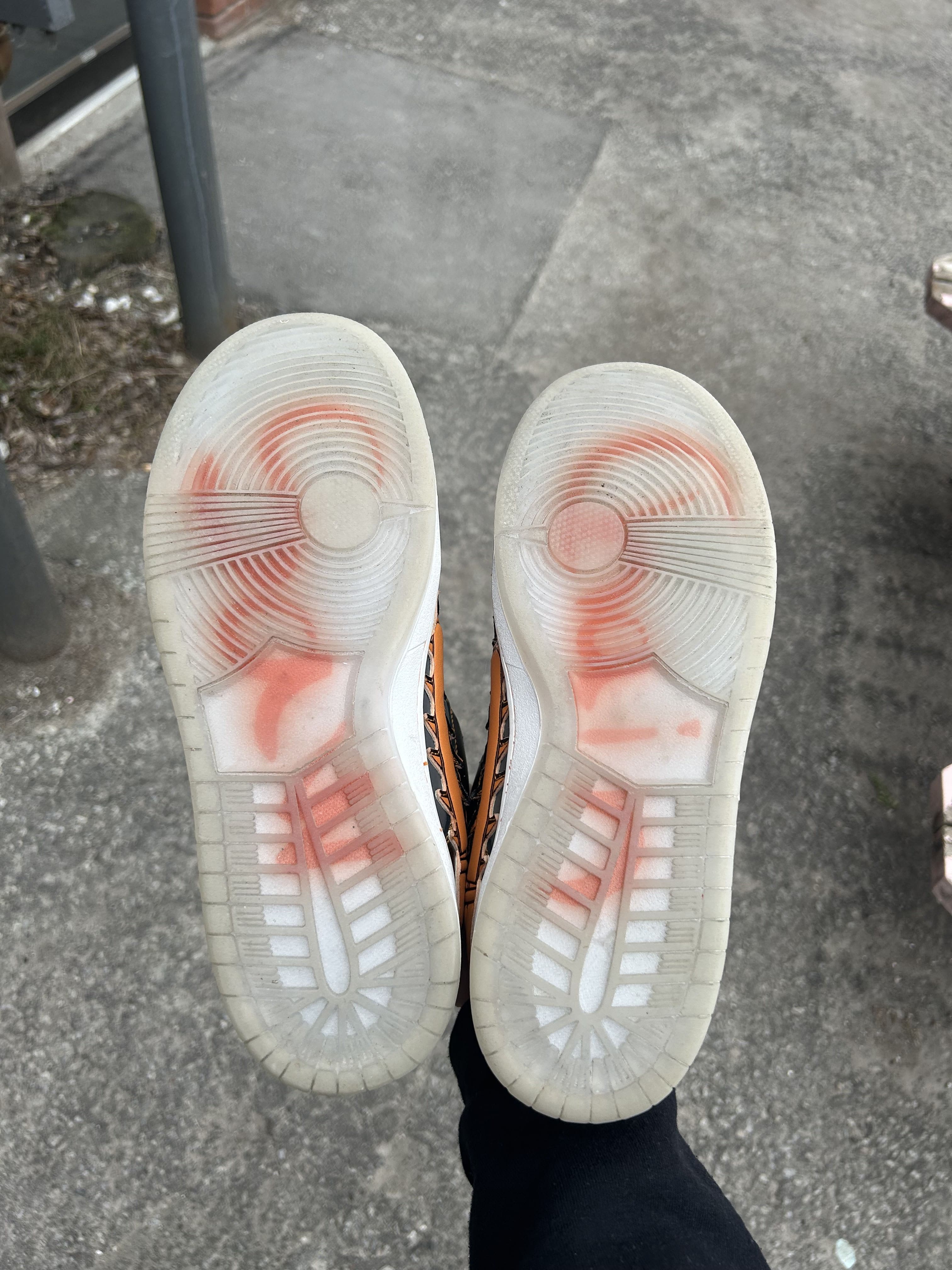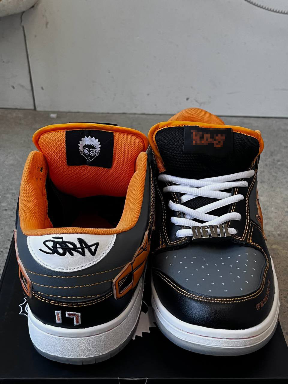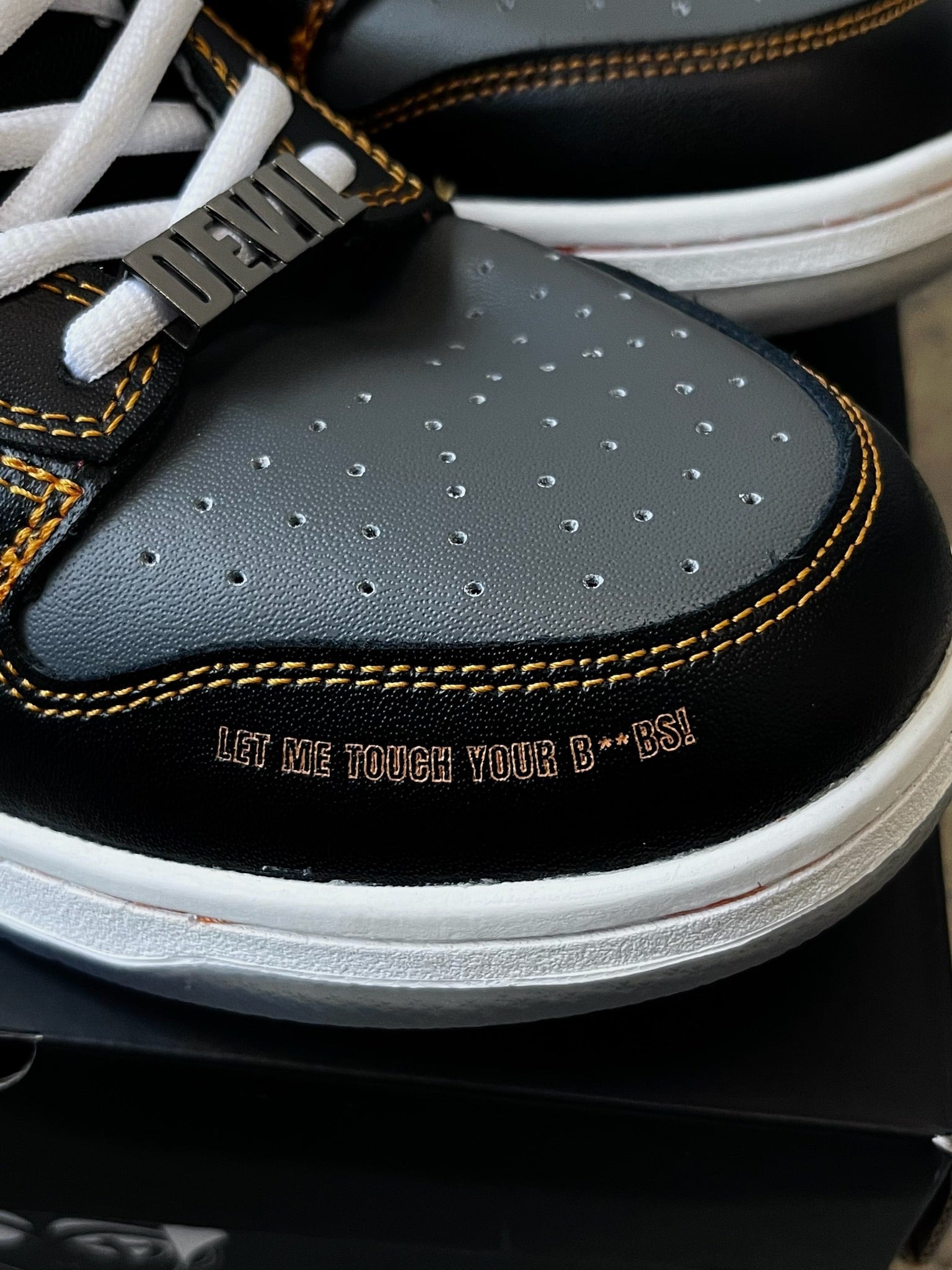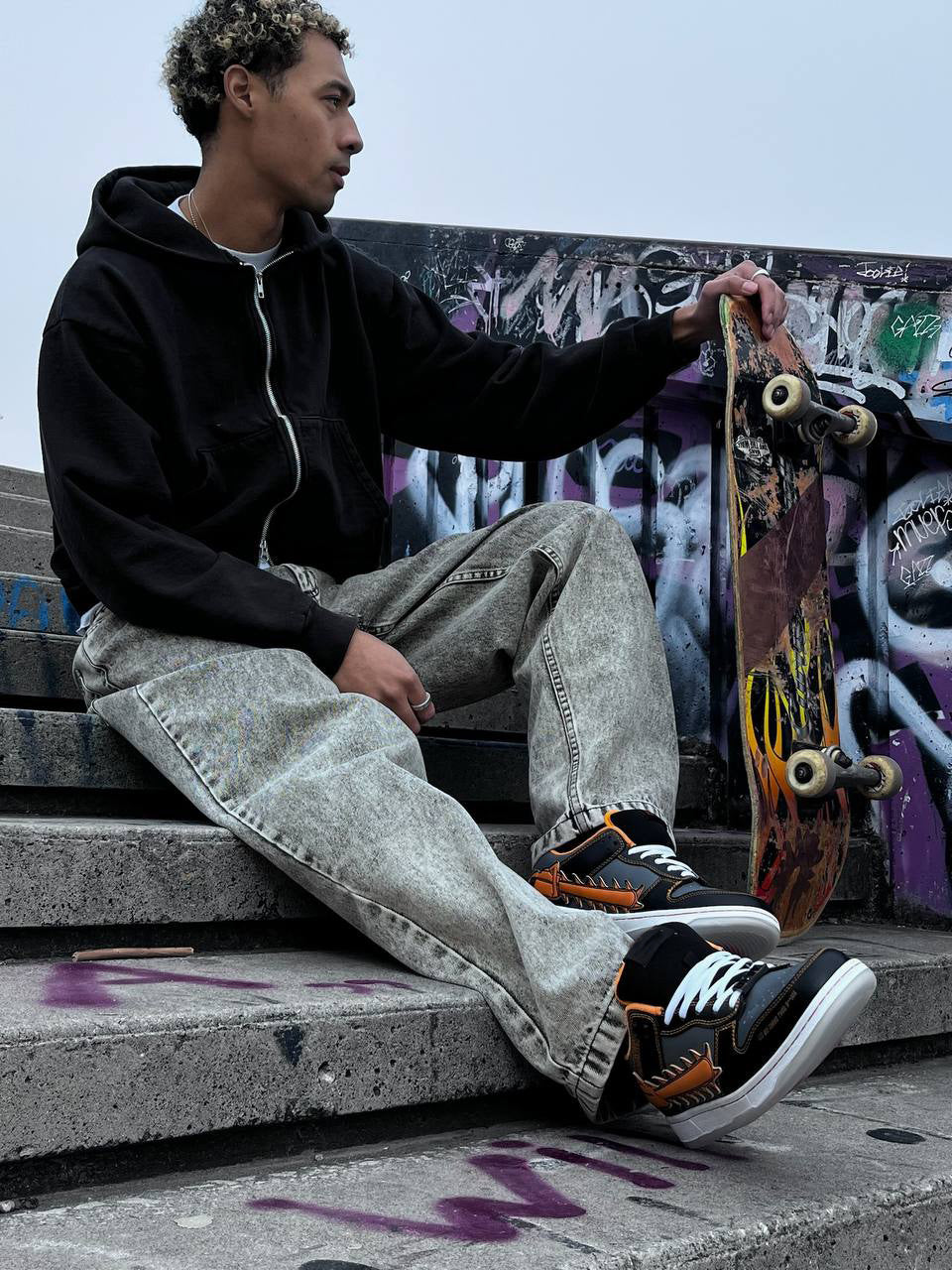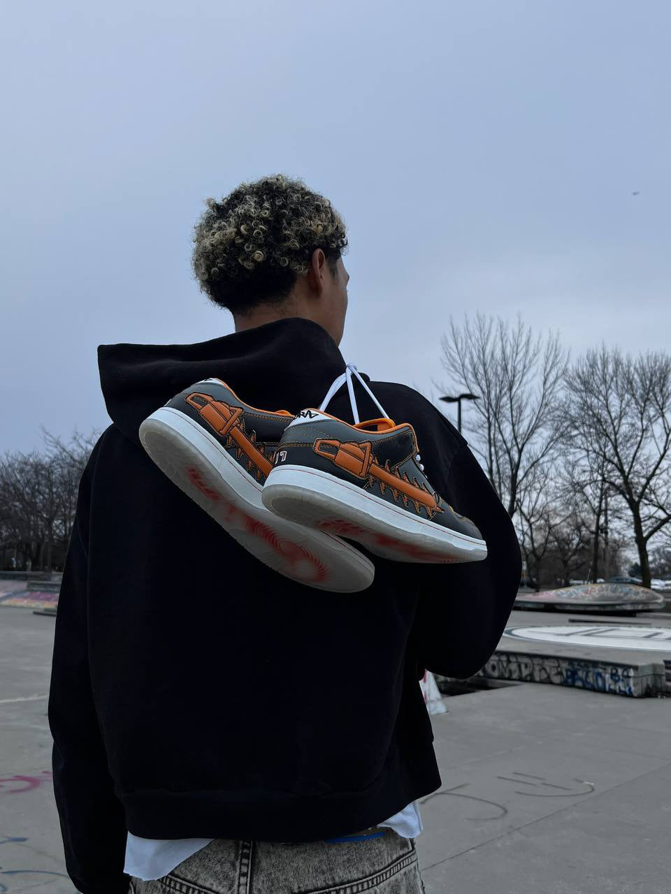 These sneakers are made of real leather with stitched-up, printed and embroidery designs on the front, back, and sides. Comfortable and durable to skate. Metal lace covers come with every pair.
