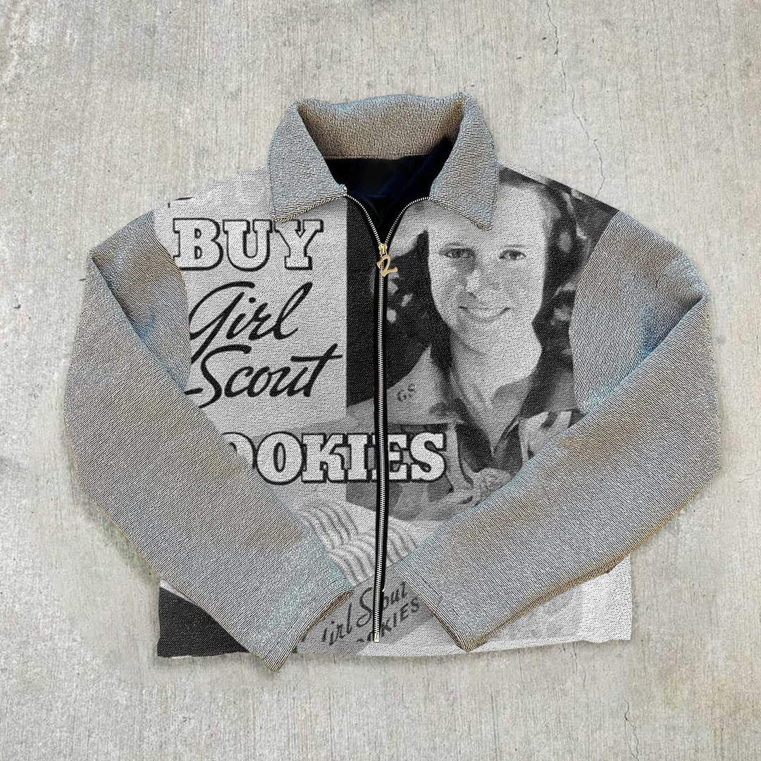 Lapel Vintage Tapestry Zip-Up Jacket