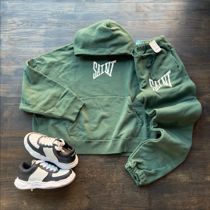 Saint letter print solid color hoodie set