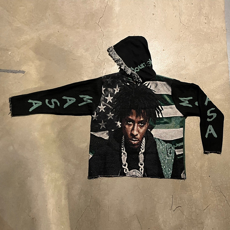 statement color-block tapestry hoodie