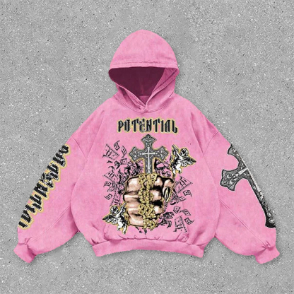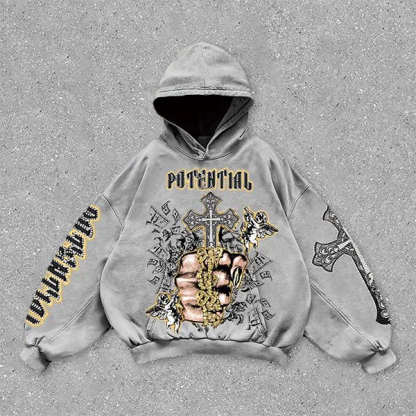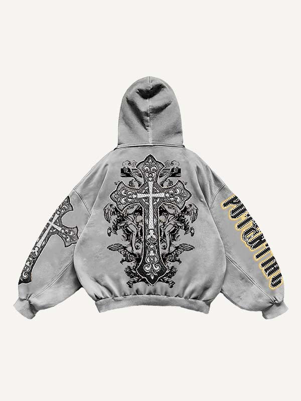 vintage cross print hoodie