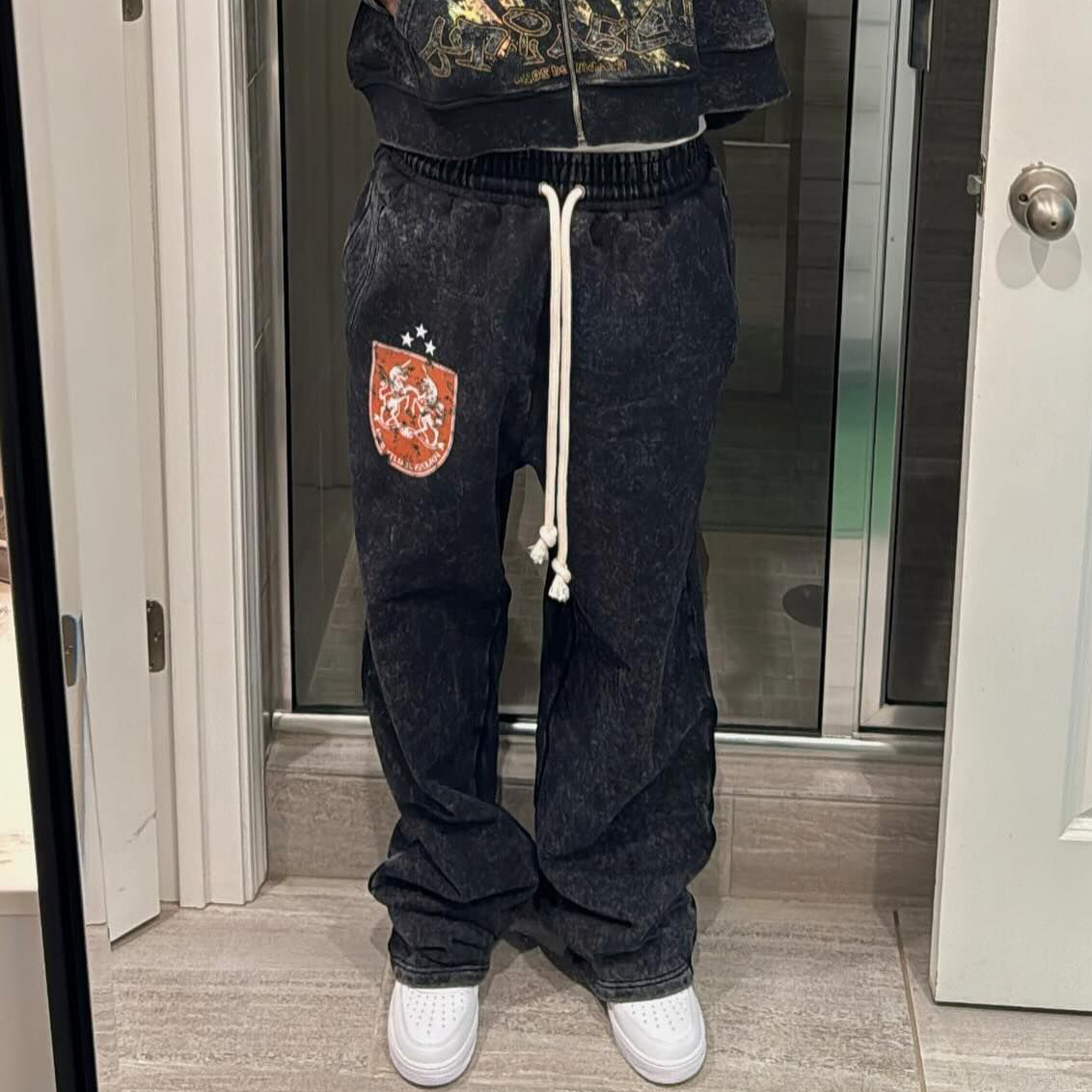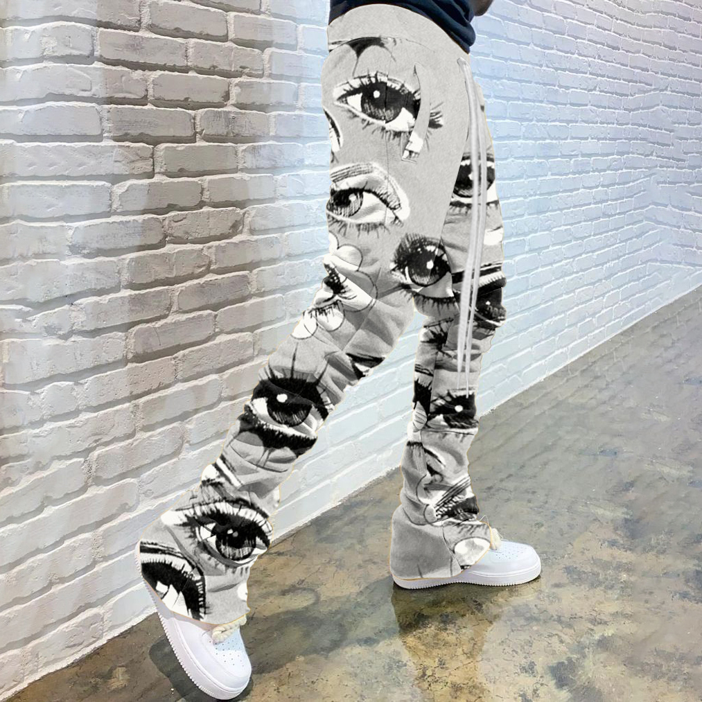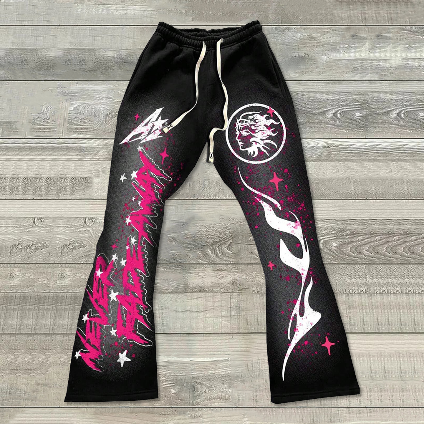 Casual Letters Print Drawstring Flared Trousers