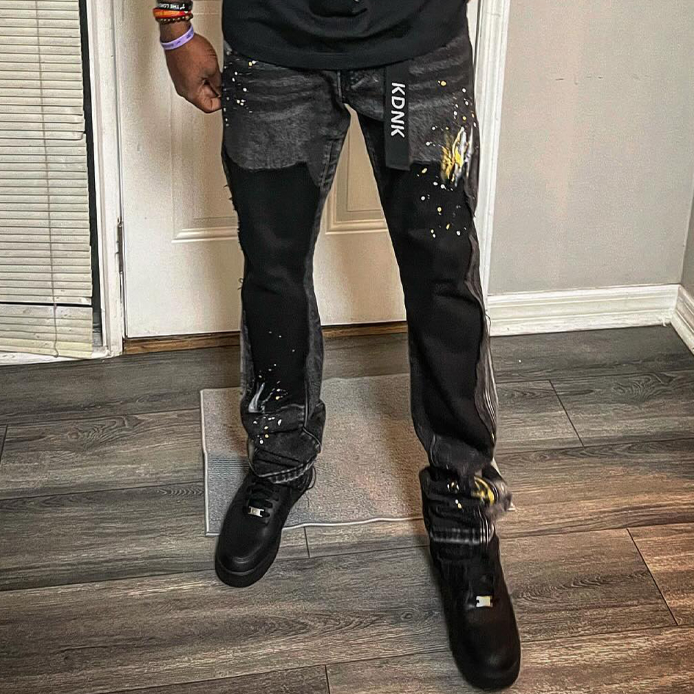 Fashionable and personalized street style contrasting color splash jeans