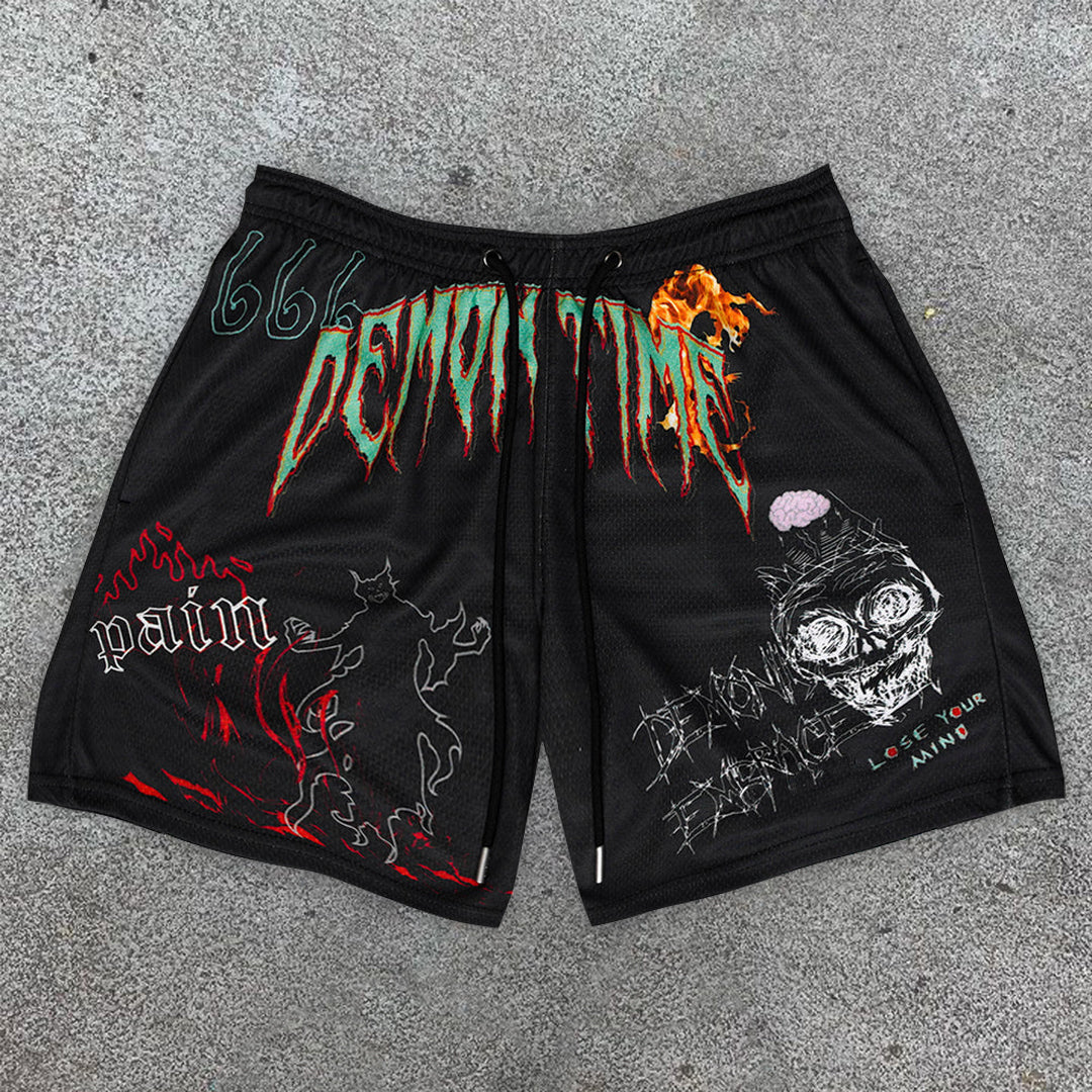 Casual Art Flower Pattern Fashion Mesh Shorts