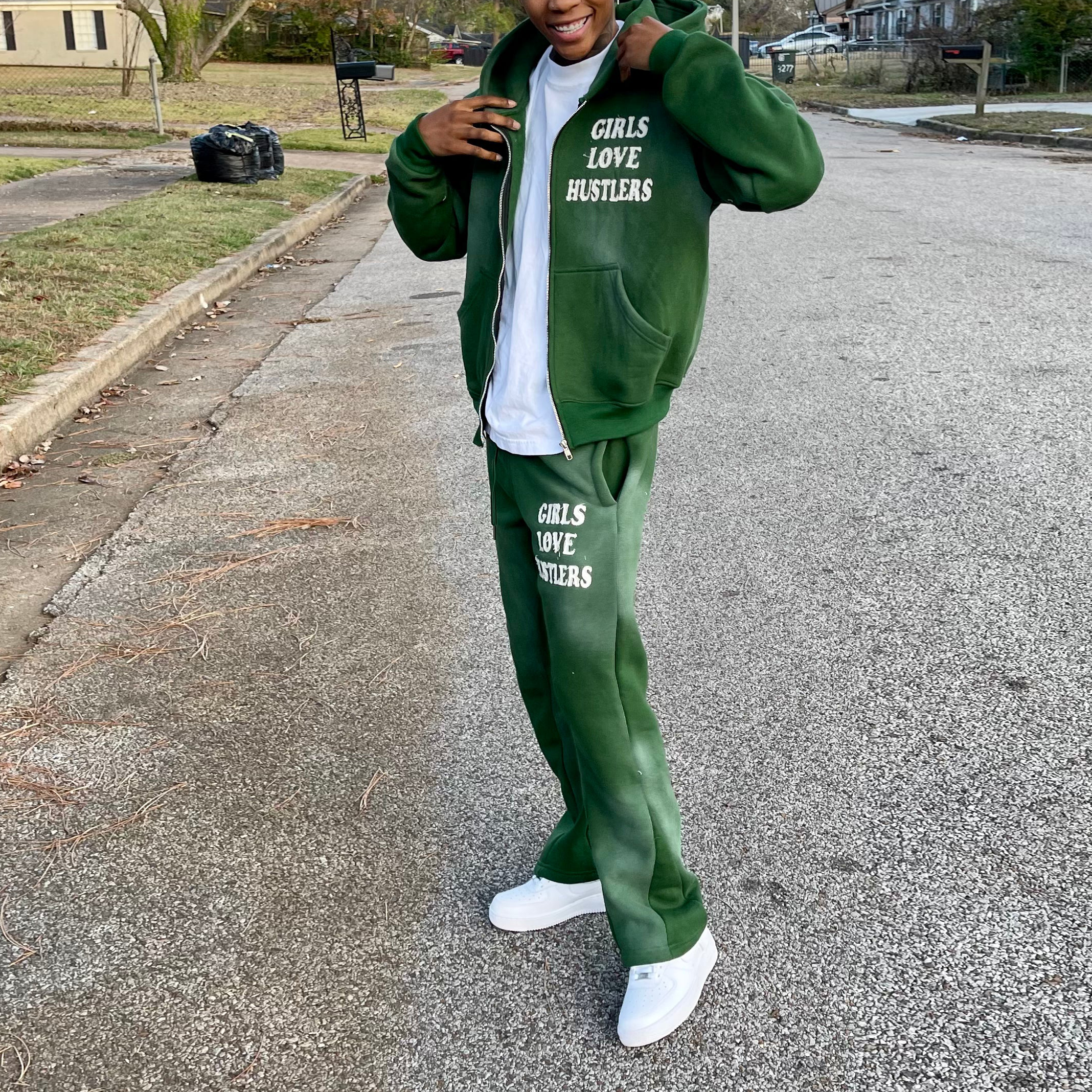 Casual Street Retro Zipper Hoodie Pants Two-Piece Set