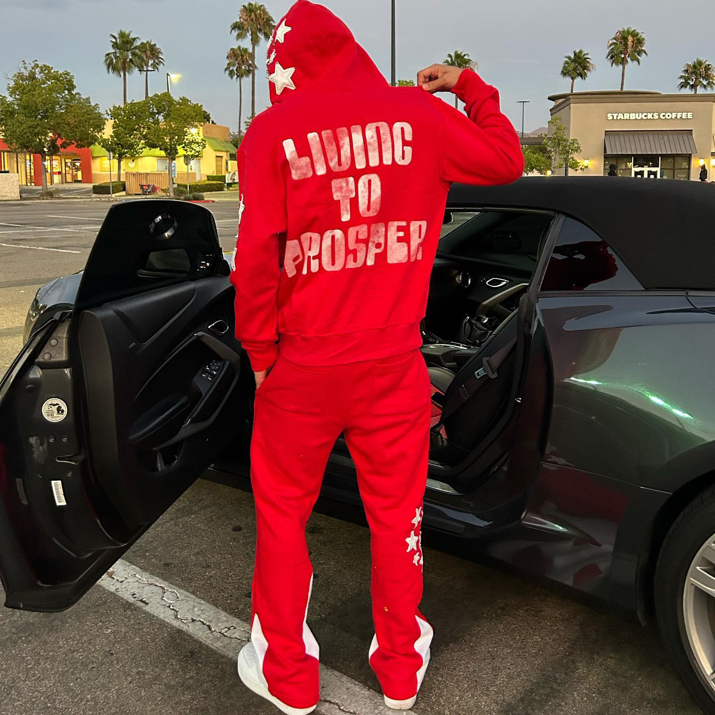 Multi-Element Print Hoodie Sweatpants Two Piece Set
