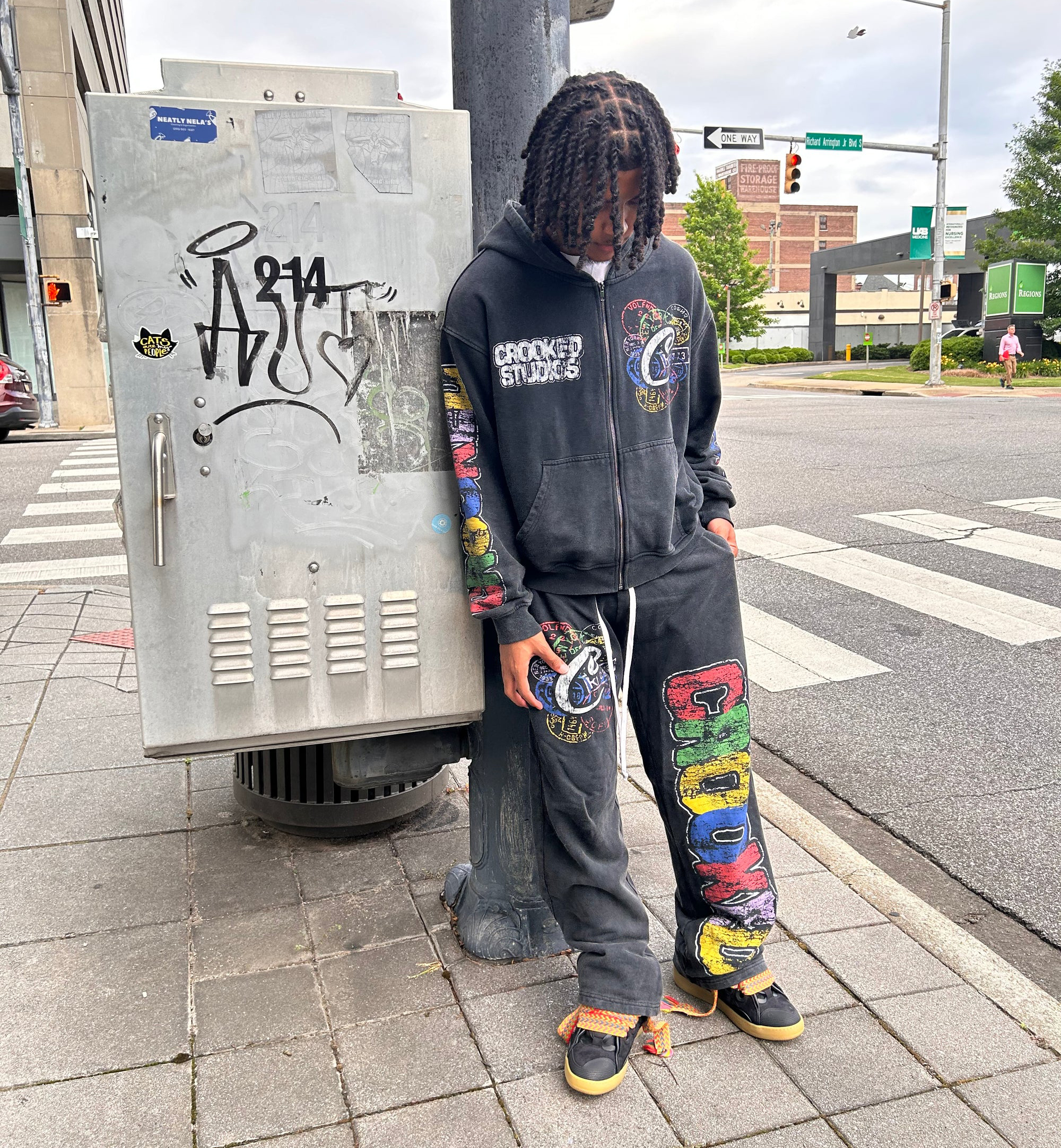 Spider Web Letters Heart Print Two Piece Hoodie Set