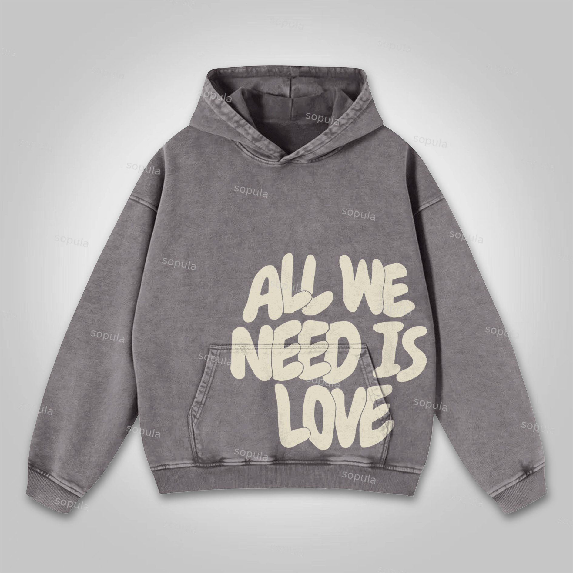 All We Need Is Love Print Pink Washed Hoodie