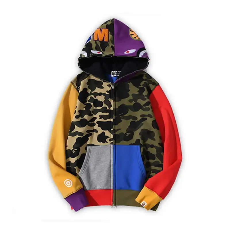 The Bape Camo Shark Full Zip Hoodie is a must-have for any streetwear fan. If you’re looking for a statement piece that will turn heads, the Bape Camo Shark Hoodie is the perfect choice for you.