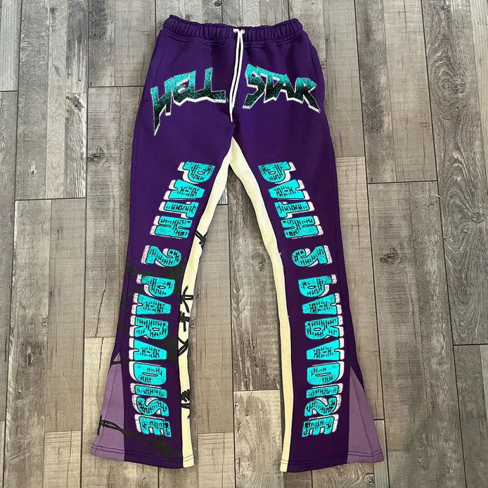 Contrast Color Letters Print Pocket Flared Trousers