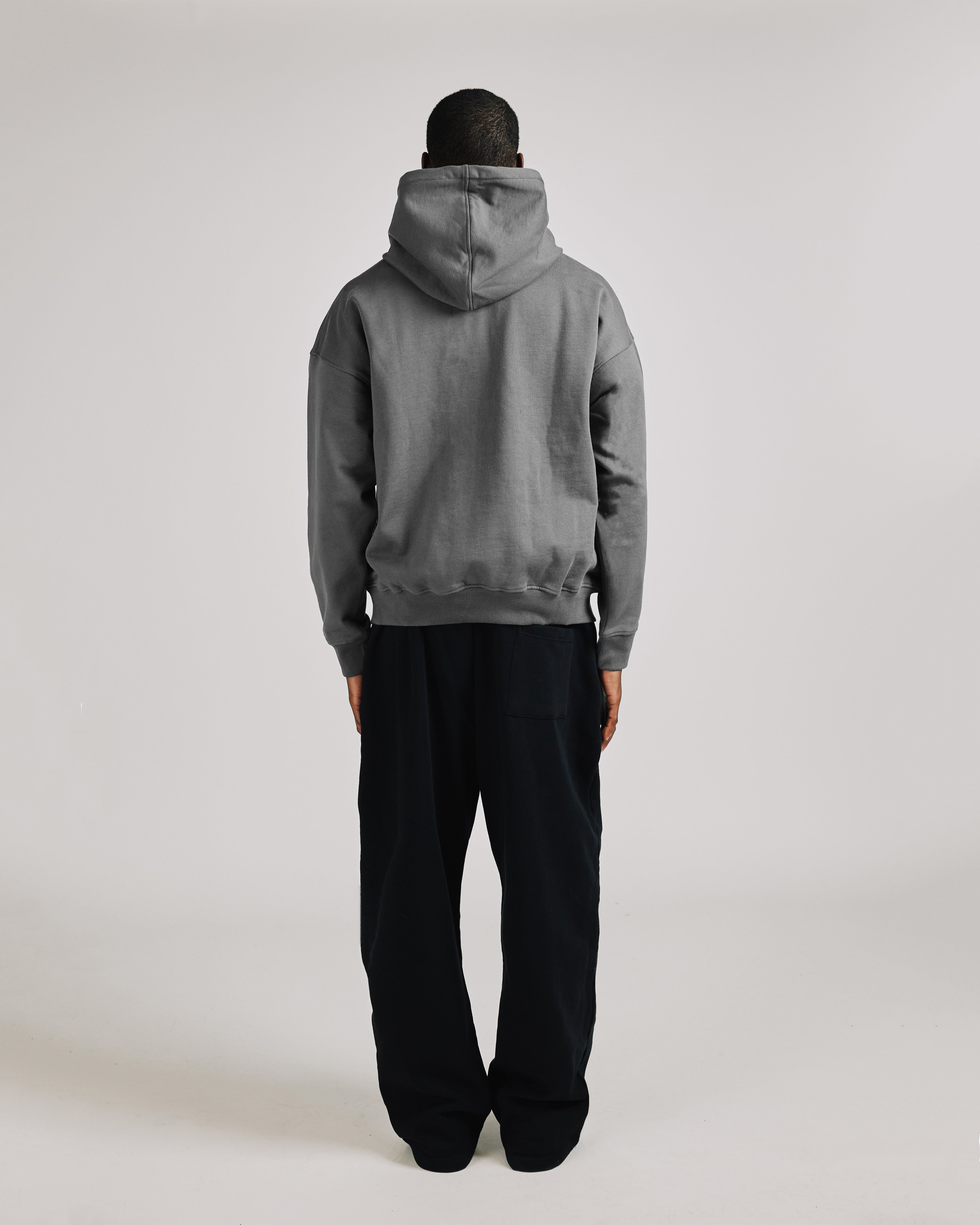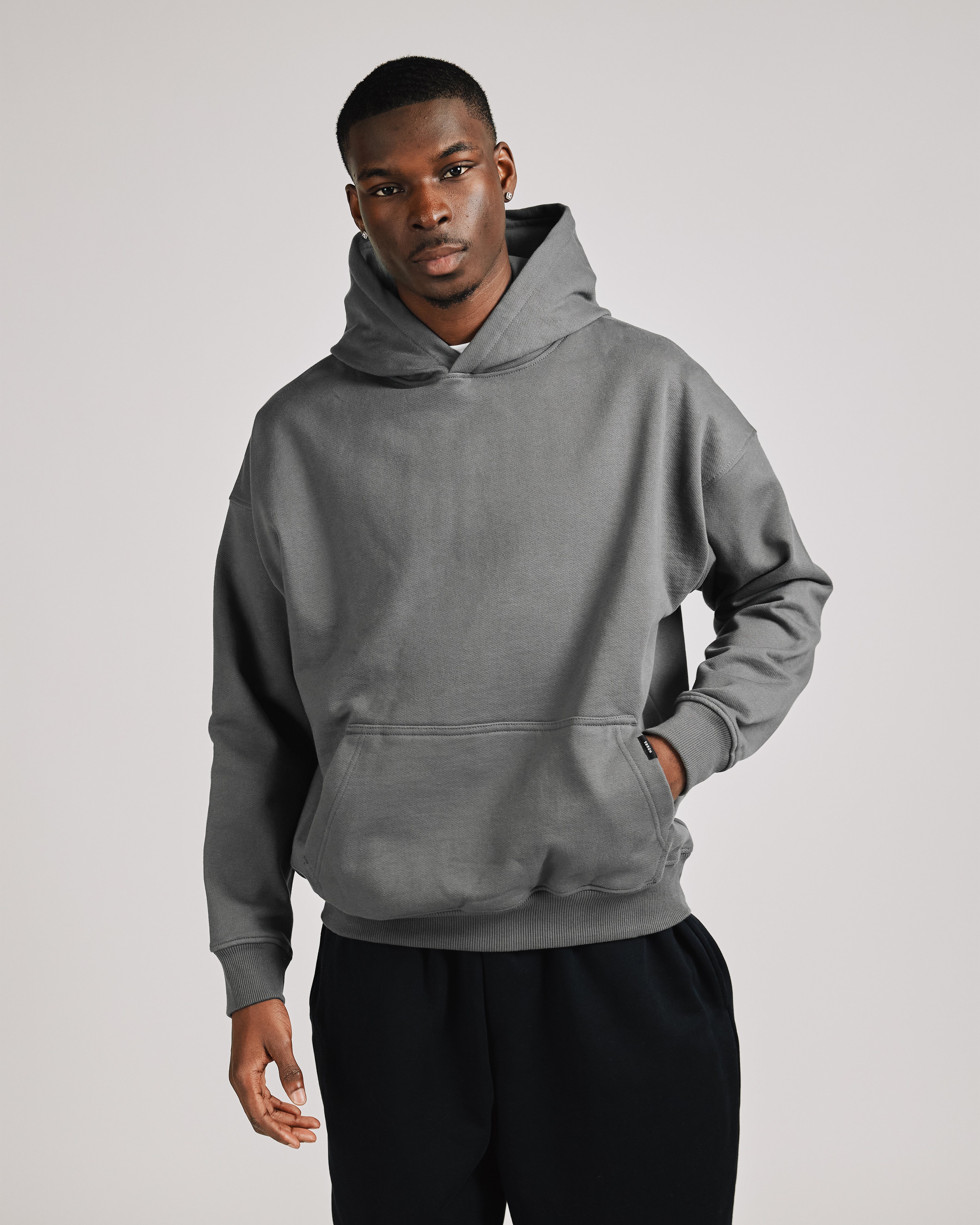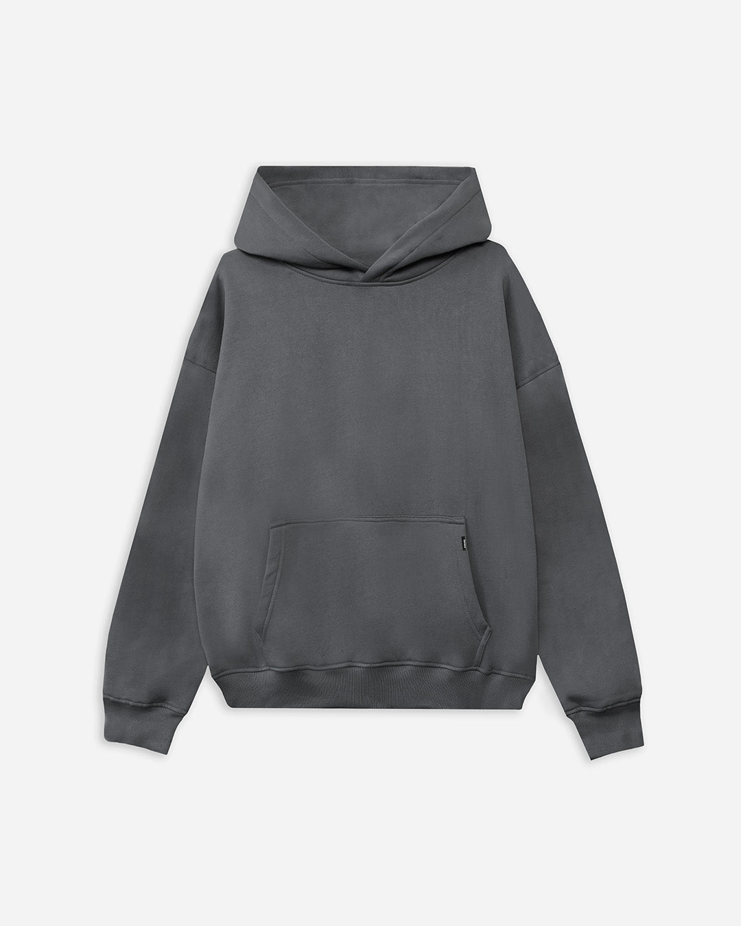 Made in our new upgraded 480 GSM cotton fabric, this charcoal hoodie features a street inspired look with drop shoulders.