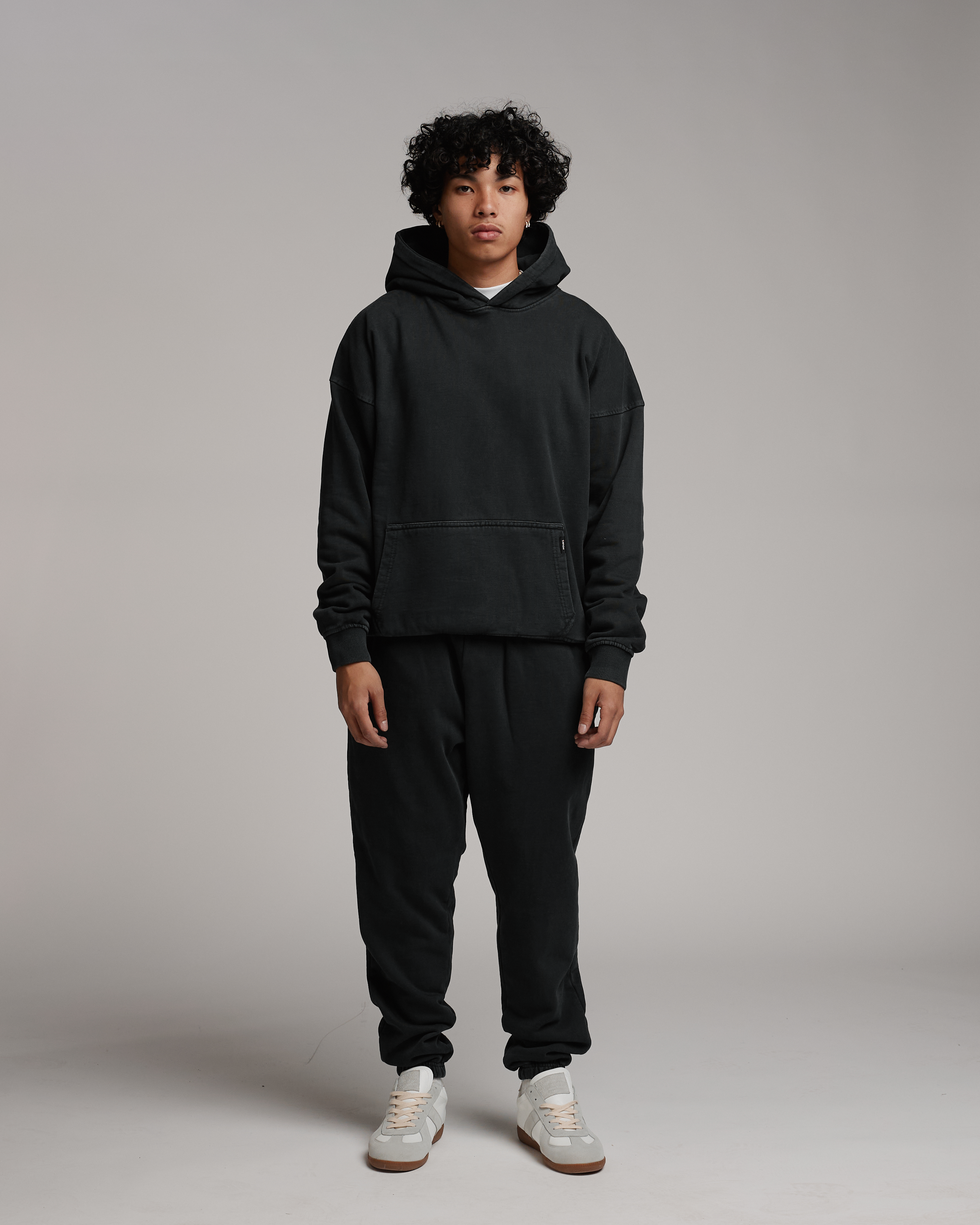 Crafted from a premium 450GSM 100% cotton french terry fabric, our iconic drop shoulder hoodie features a relaxed fit, cinched hem, and drop shoulders giving it a unique boxy look.  A specialized mineral stone wash has been used to obtain a vintage look, ensuring each piece is one-of-a-kind.