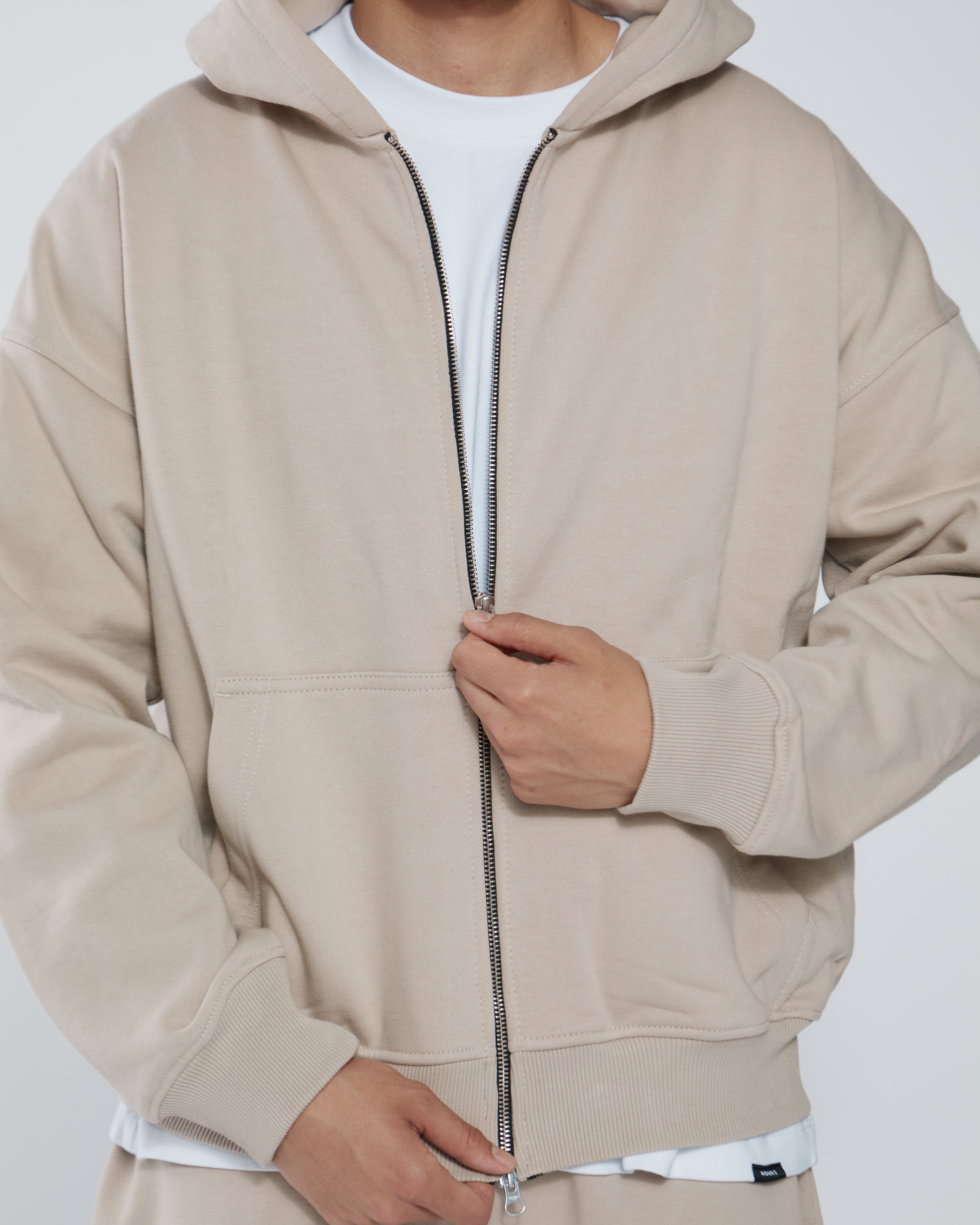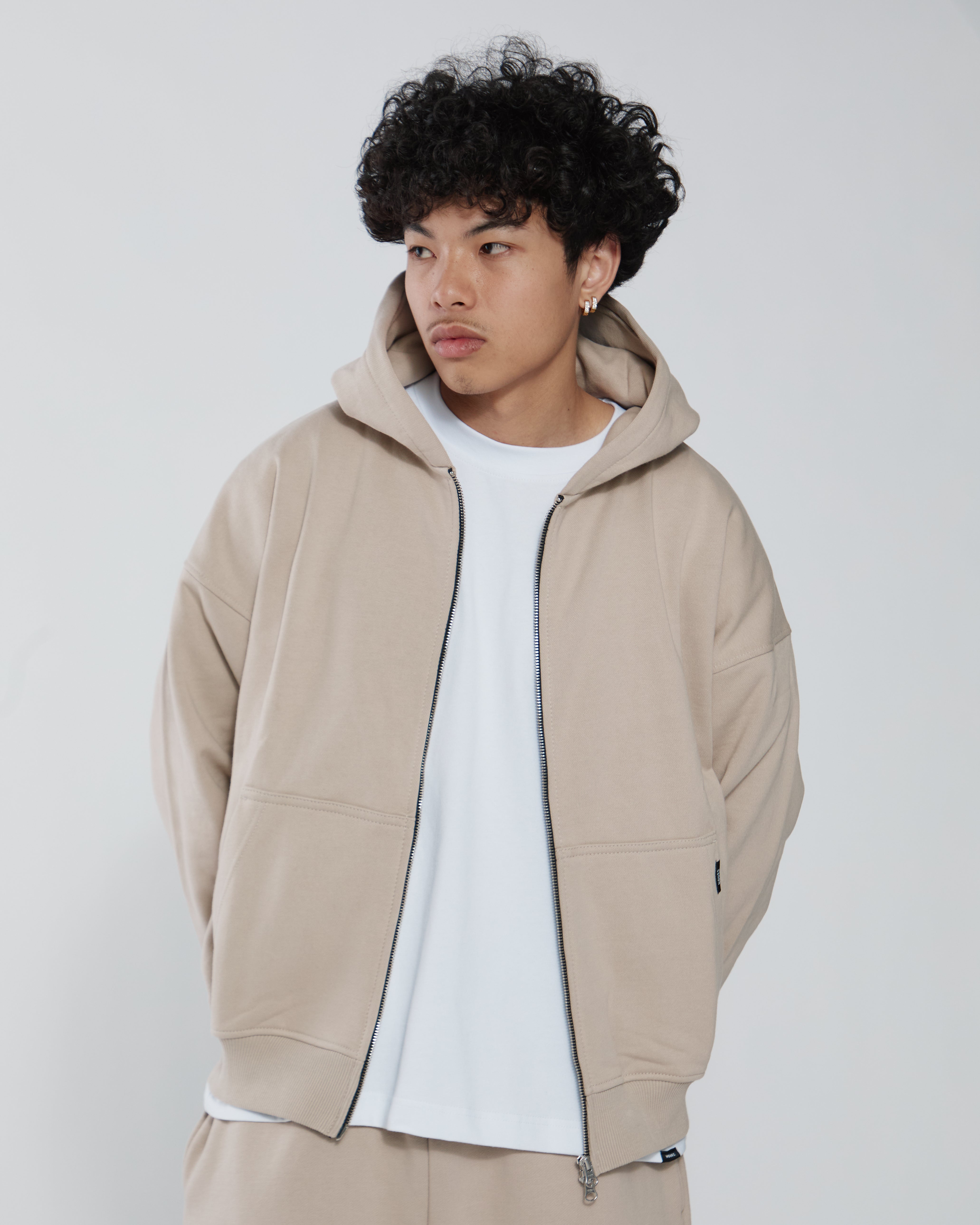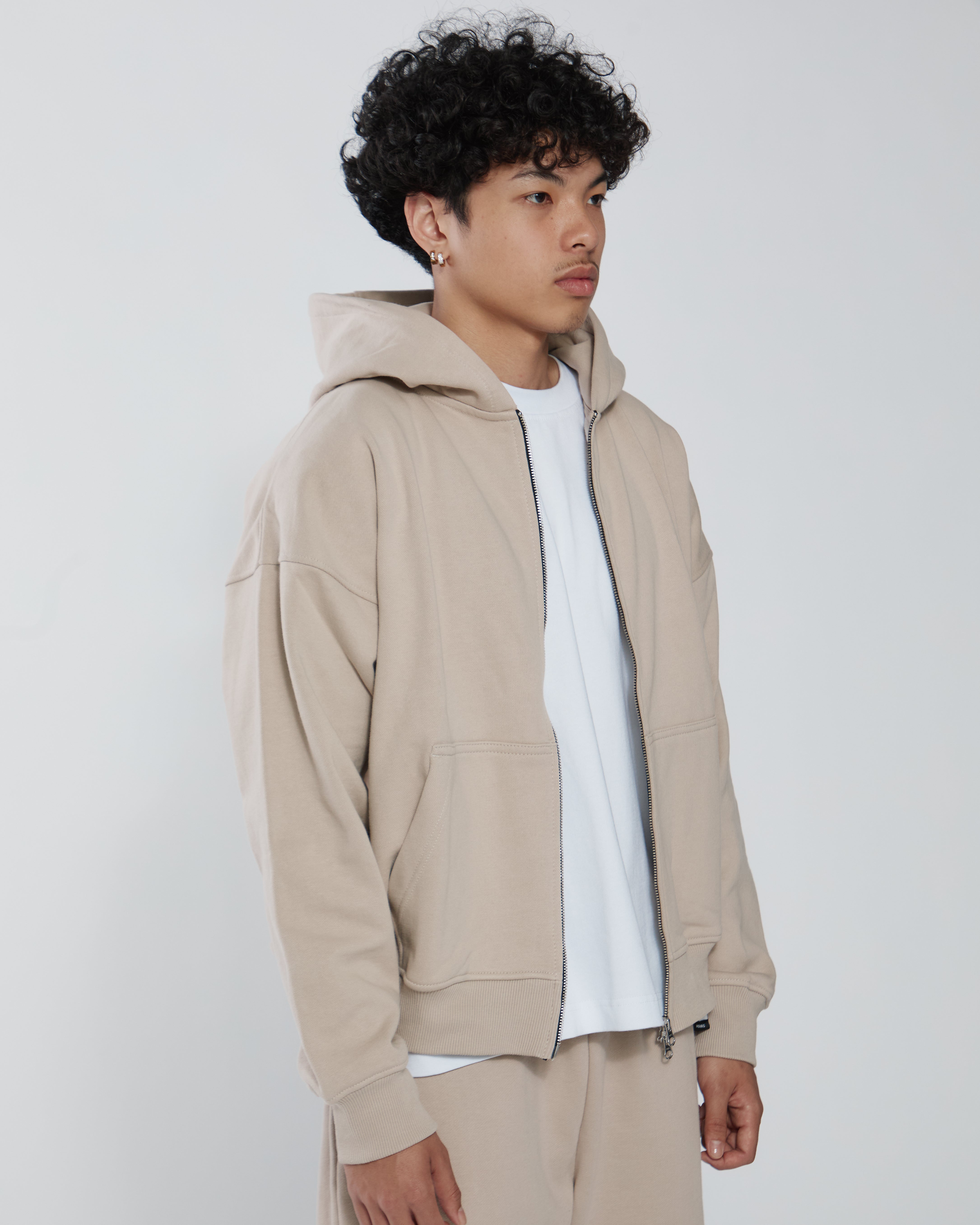 Drop Shoulder Zip Hoodie - Desert