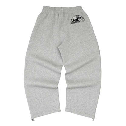 This heavyweight fleece tracksuit combines oversized comfort with bold street attitude. Featuring wide-leg sweatpants and a roomy hoodie, both pieces are finished with a graphic back-pocket patch for a standout look. Available in classic grey and black.
