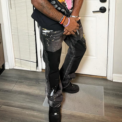 Fashionable and personalized street style contrasting color splash jeans