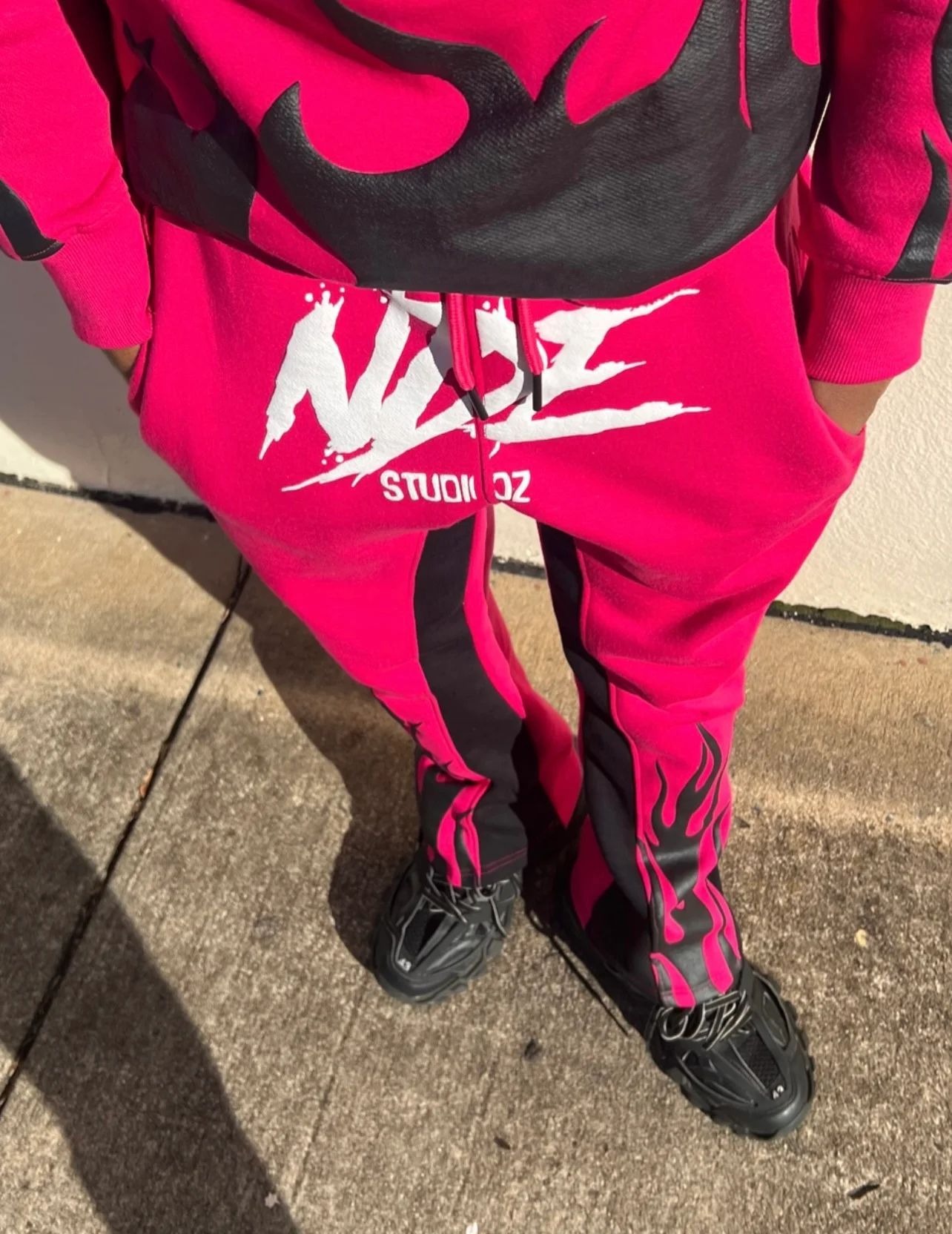 Fashionable personalized color-block letter flame flared pants