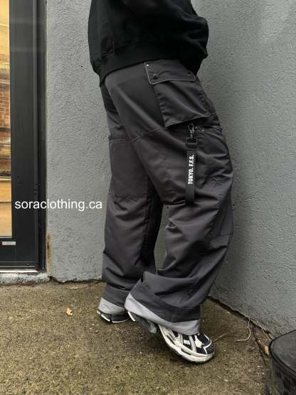 These pants are made of polyester with button pockets on each side. Reflective lines are on the pockets and the bottom of the pants. Embroideries on the front end back. Comes with the keychains on both sides.