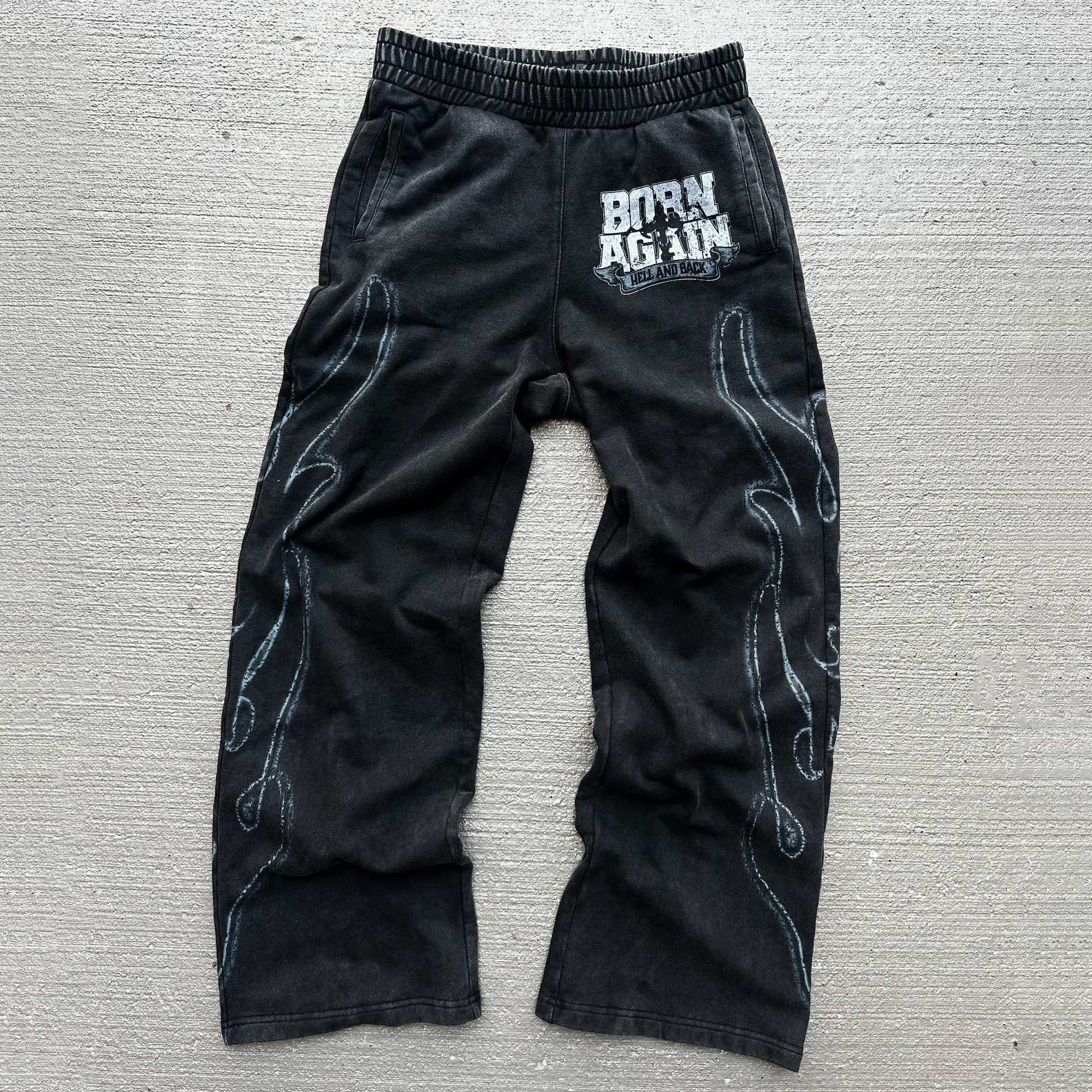 Letters Flame Print Pocket Flared Trousers