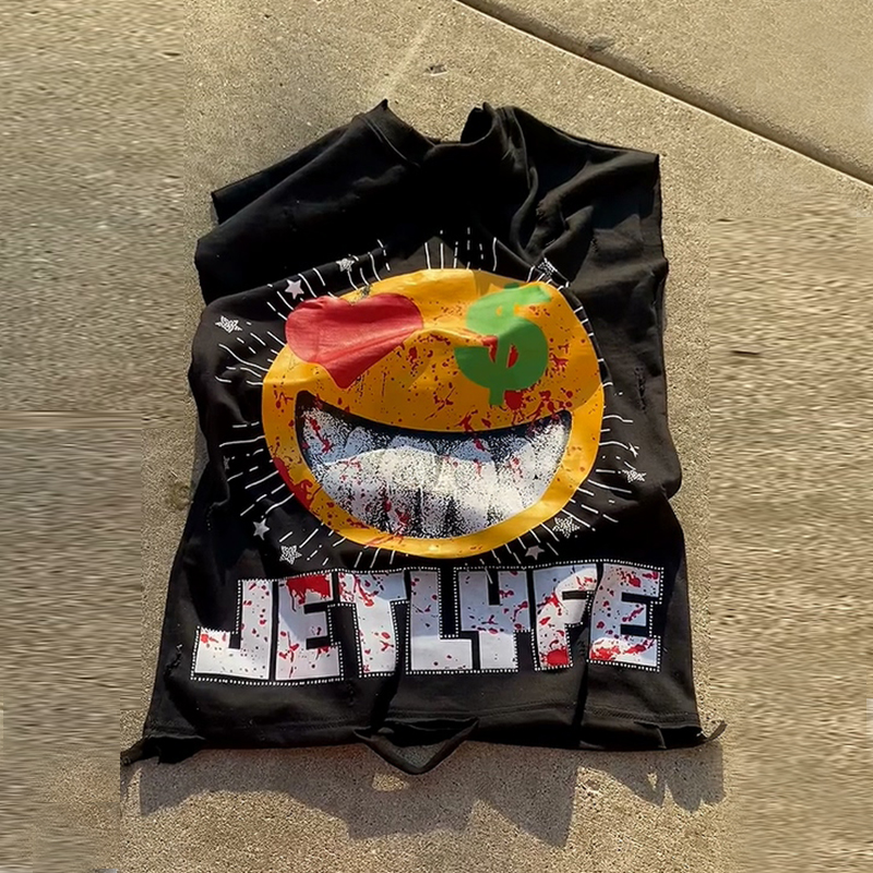 Sleeveless smiley face print vest