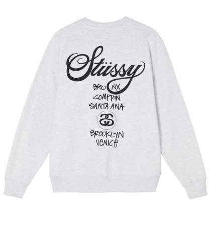 Stussy World Tour Crewneck Sweatshirt (Grey)