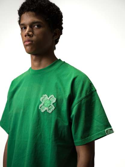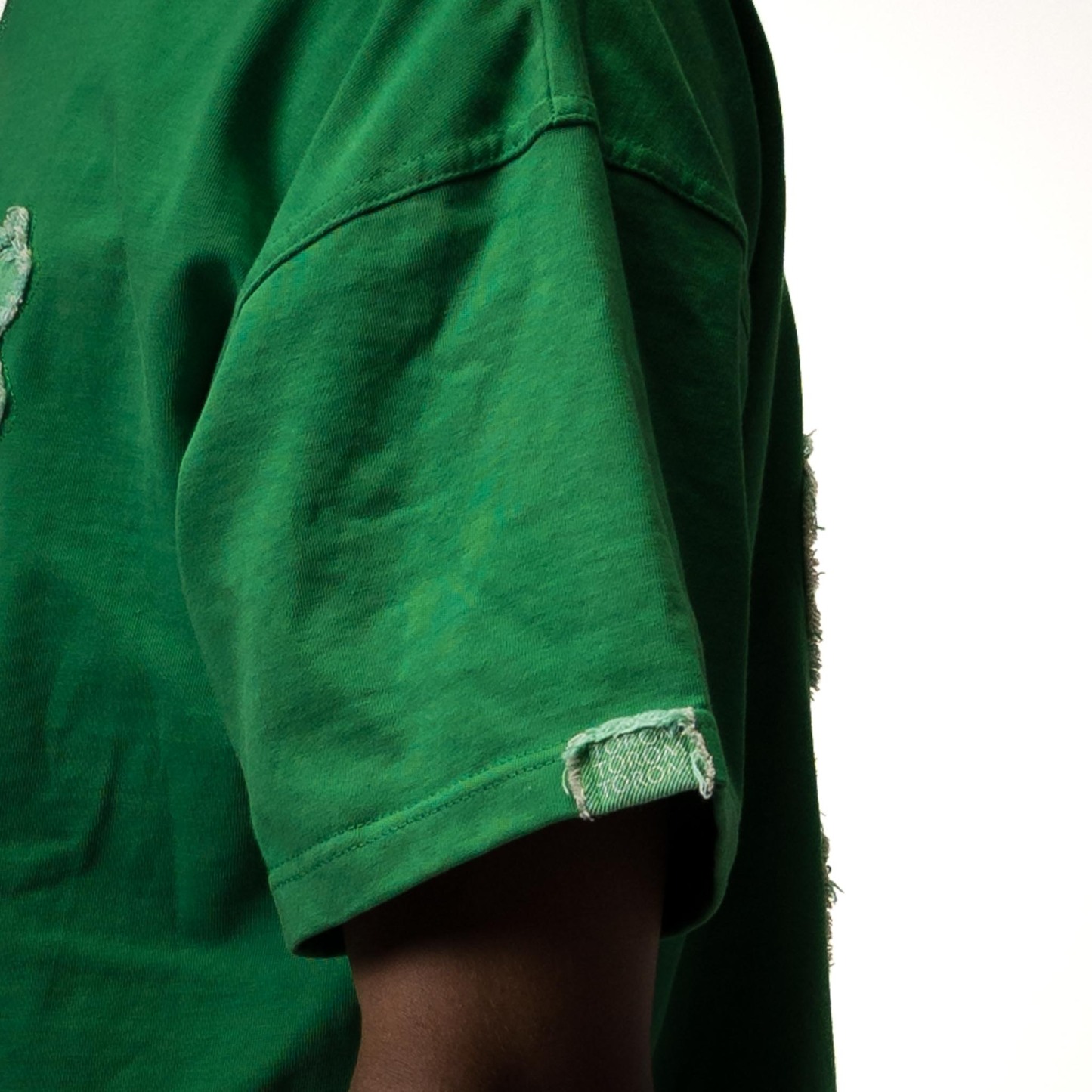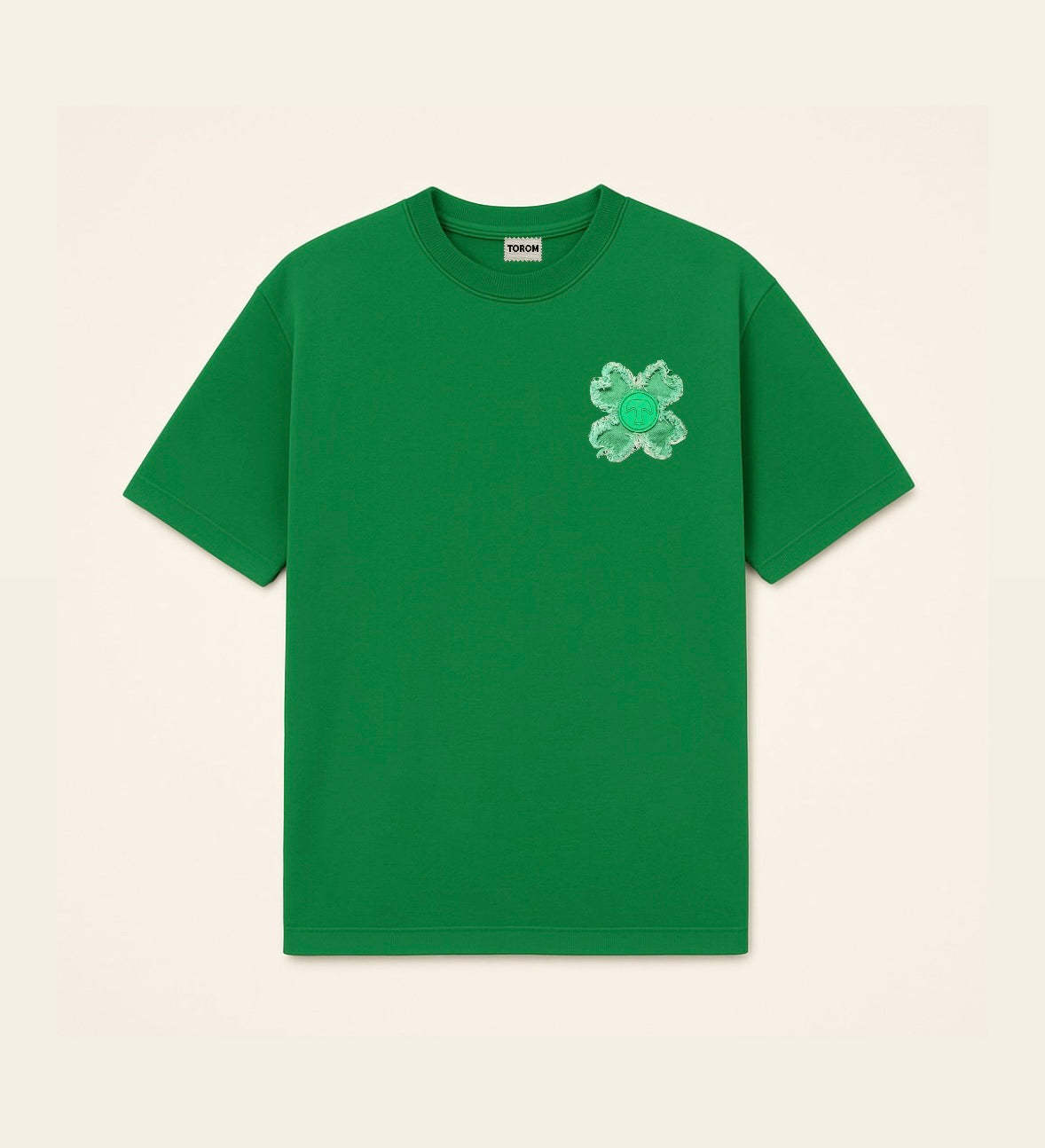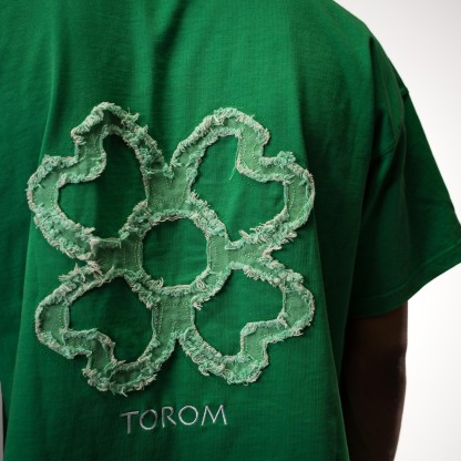 • Logo : Orné de trèfles en jean déchiré subtilement posés sur la poitrine et dans le dos, avec un trèfle XXL emblématique à l’arrière. Chaque déchirure incarne l’originalité et la singularité de TOROM.