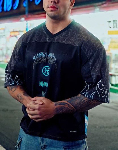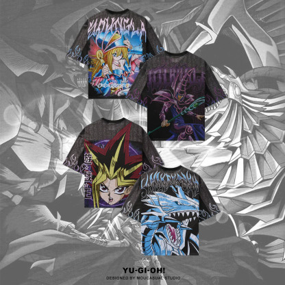 Unisex "Yu-Gi-Oh!" game anime "net" pattern print mesh breathable top
