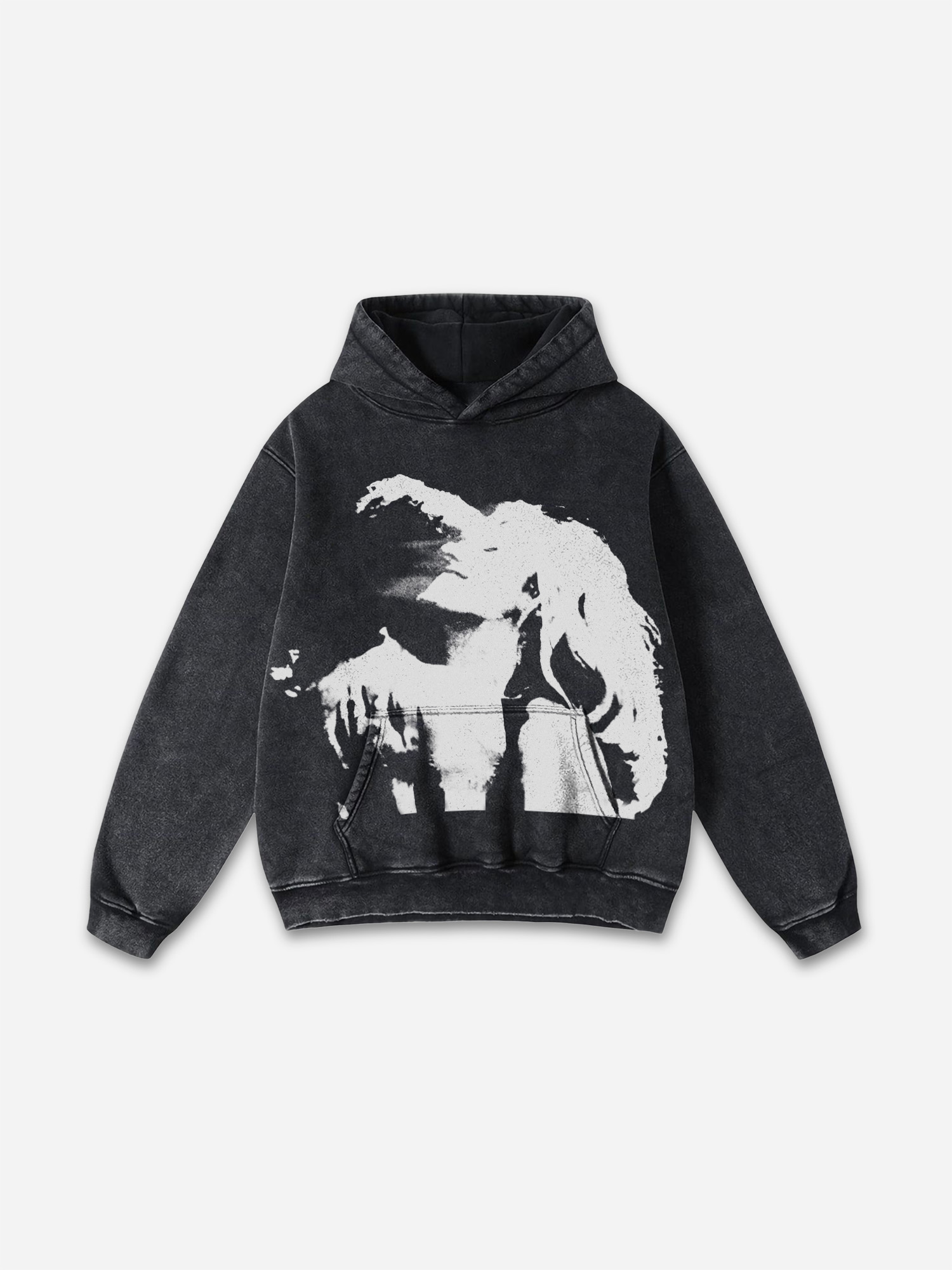 Oversized Vintage Embrace Lovers Graphic Black Acid Wash Pullover Hoodie