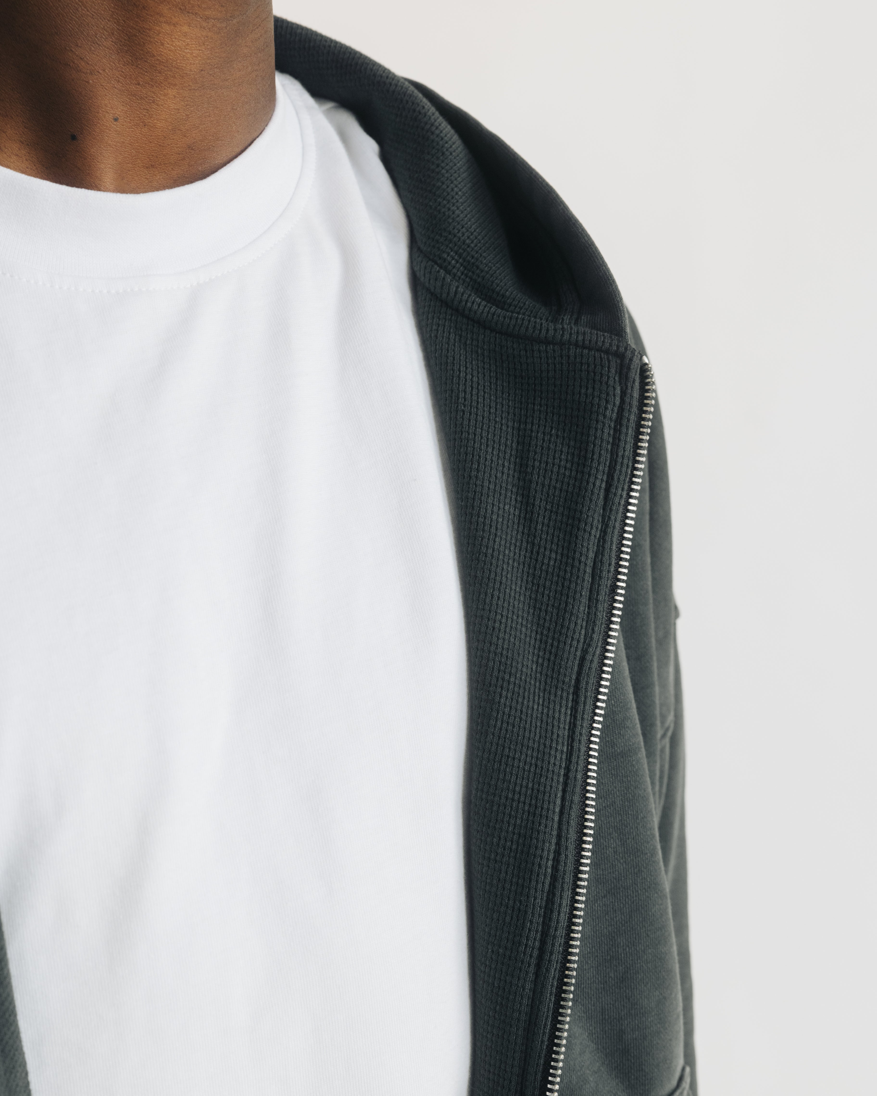 We’ve elevated our best-selling drop shoulder hoodie by combining our 100% cotton French terry fabric with a 350 GSM thermal lining, creating the perfect heavyweight hoodie. This garment has also gone through a specialized mineral wash, giving it a unique vintage look and ensuring it’s preshrunk.