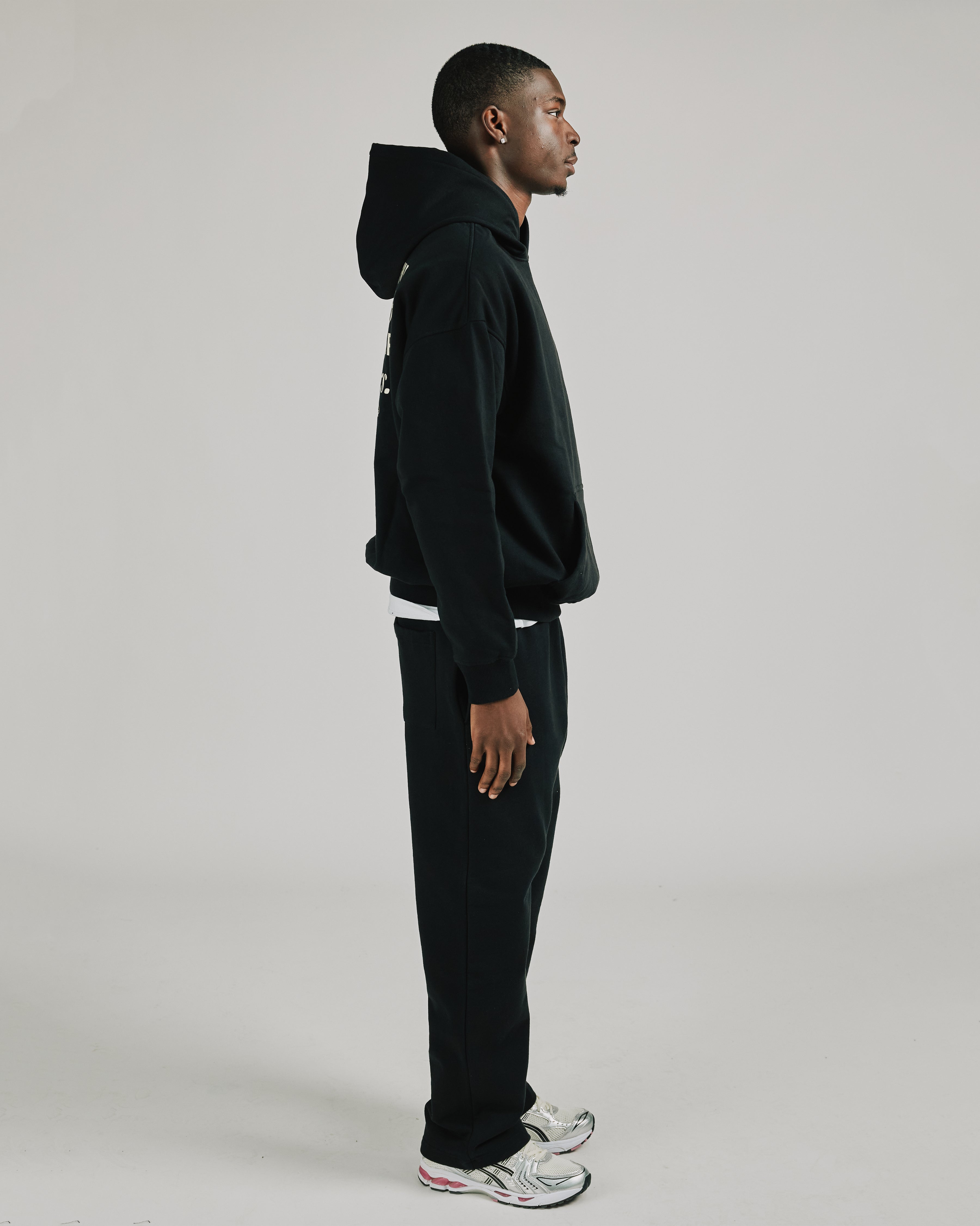 Made in the same silhouette as our popular drop shoulder hoodies, this garment is crafted from 100% 360GSM Cotton fabric and features our Yours is Hours design.